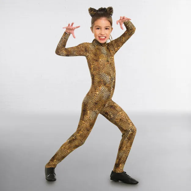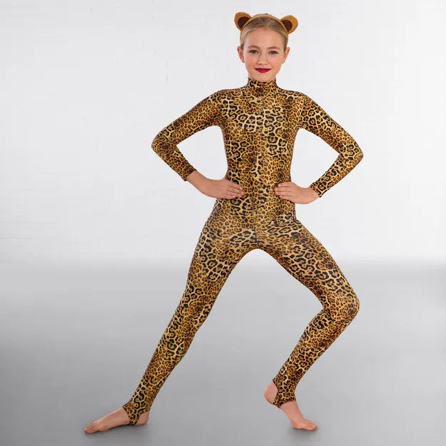 * Attractive animal print high neck long sleeved catsuit, with keyhole back