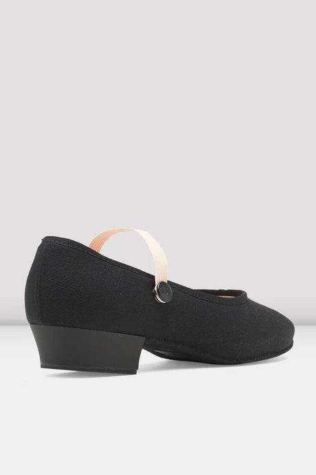 - Wide low 1" heel with canvas upper for flexibility and breathability