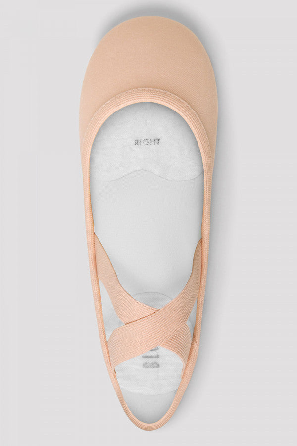 Introducing Elation, Bloch's new ballet shoe that sets a new standard for precision and comfort. Crafted with an asymmetrical design for a perfect fit, Elation features a 4-way stretch fabric in the arch, ensuring fit and flexibility for flawless arch support. The combination of innovative stretch lining and premium stretch canvas upper, not only offers supreme comfort but also allows the wearer full freedom to spread their toes. The asymmetrical suede outsole completes the shoe, ensuring elegance and durability. Elation - Bloch's innovation to enhance your performance.