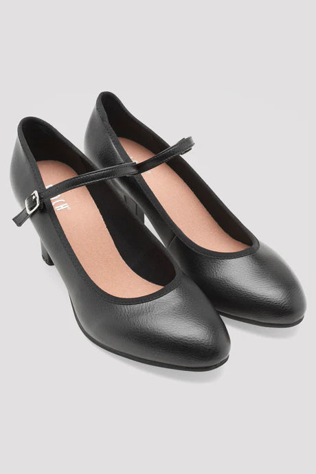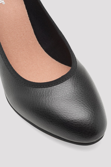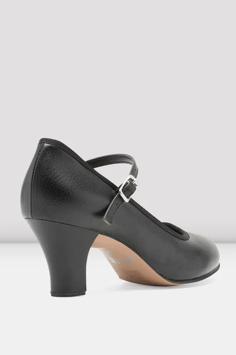 Kickline is a light, synthetic leather character shoe with a sturdy 2.5 inch heel, a resin outsole and maximum arch support. A feminine vamp line makes it ideal for the character repertoire.