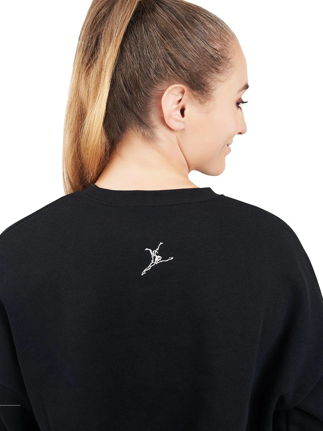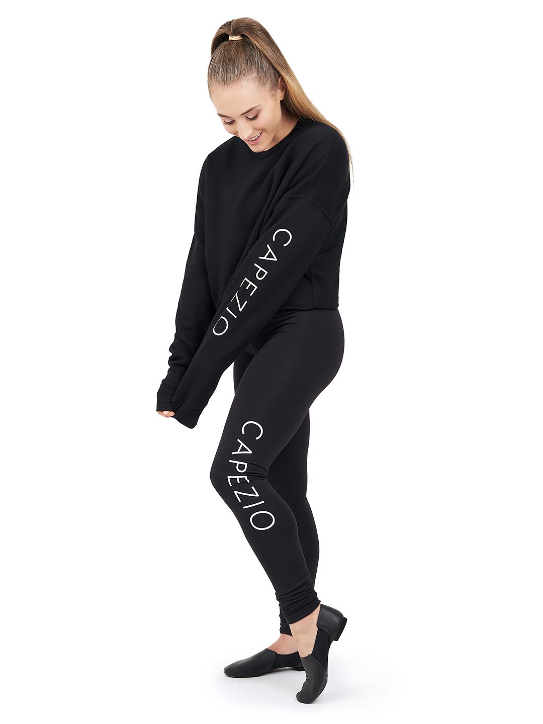 Crop it like it's hot - a trendy silhouette made for today's dancers. This comfy cropped sweatshirt features a crew neckline and Capezio logo going down the left arm.
