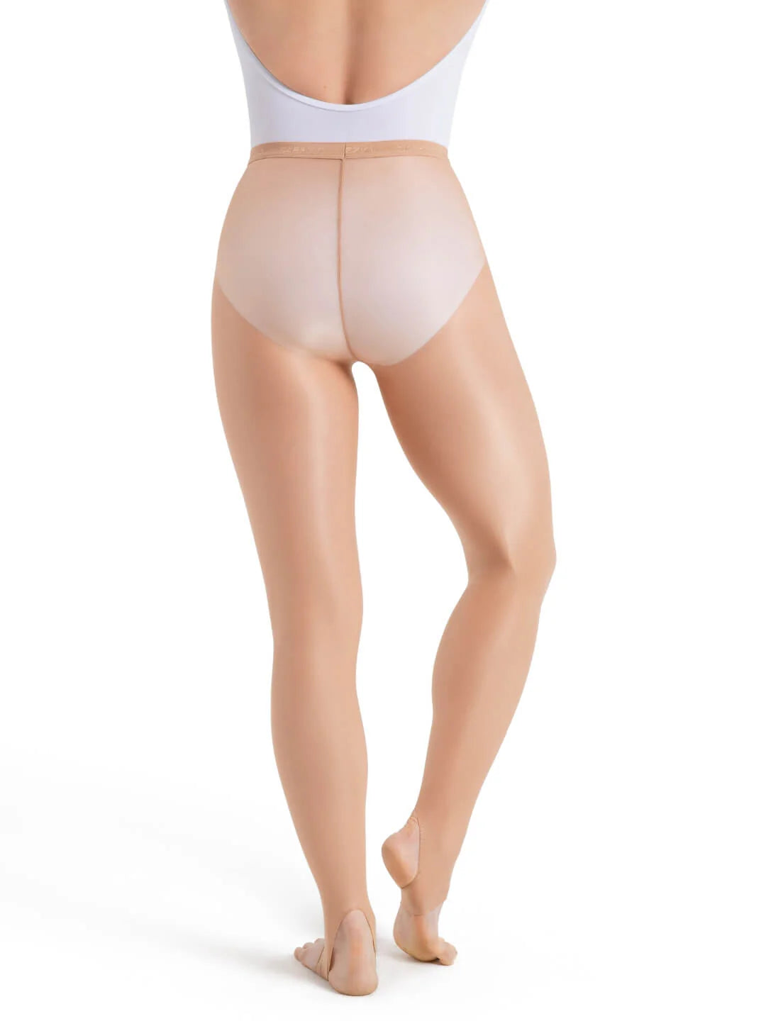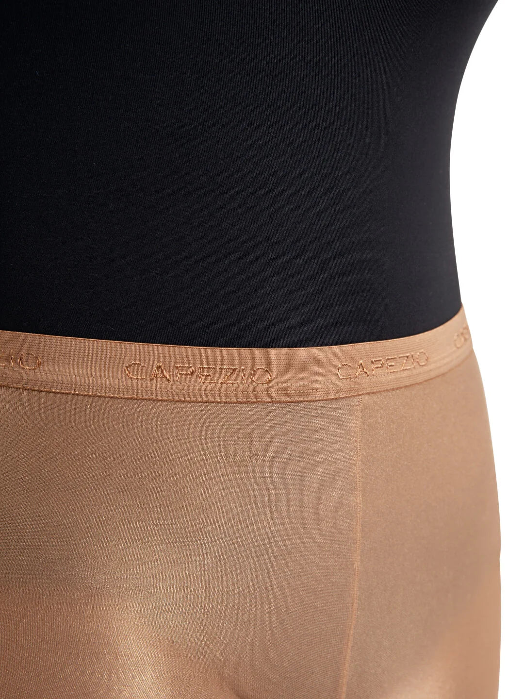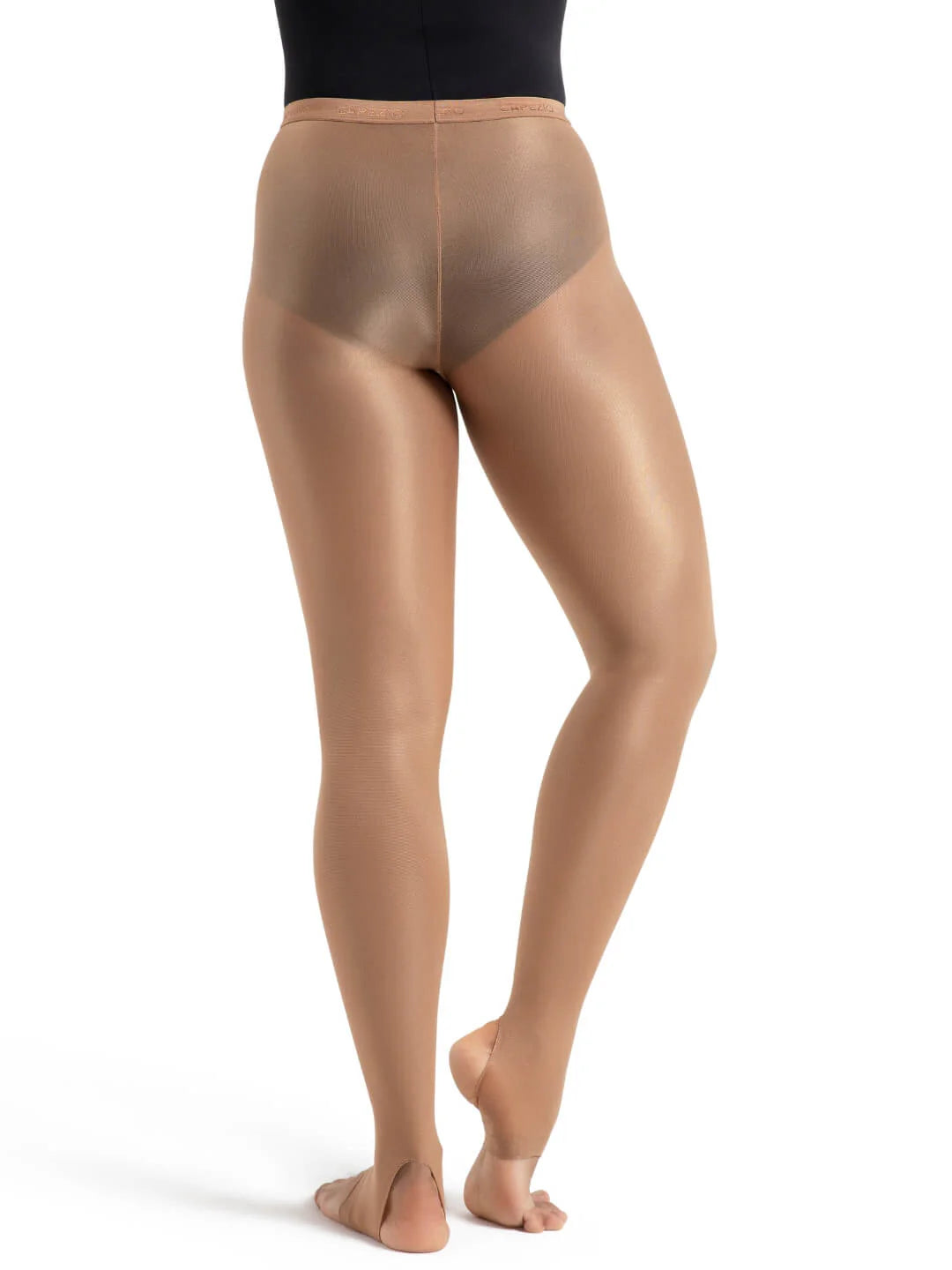 Lustrous and soft, the Ultra Shimmery Stirrup Tight is designed to stand out. The shiny, semi-opaque nylon and spandex fabric blend provides a stylized look sure to turn heads. Features an elastic waistband that will stay securely in place all day. Dyed-to-match gusset for freedom of movement. It is a favorite style for dancers and celebrities alike. Available in adult and child sizes.