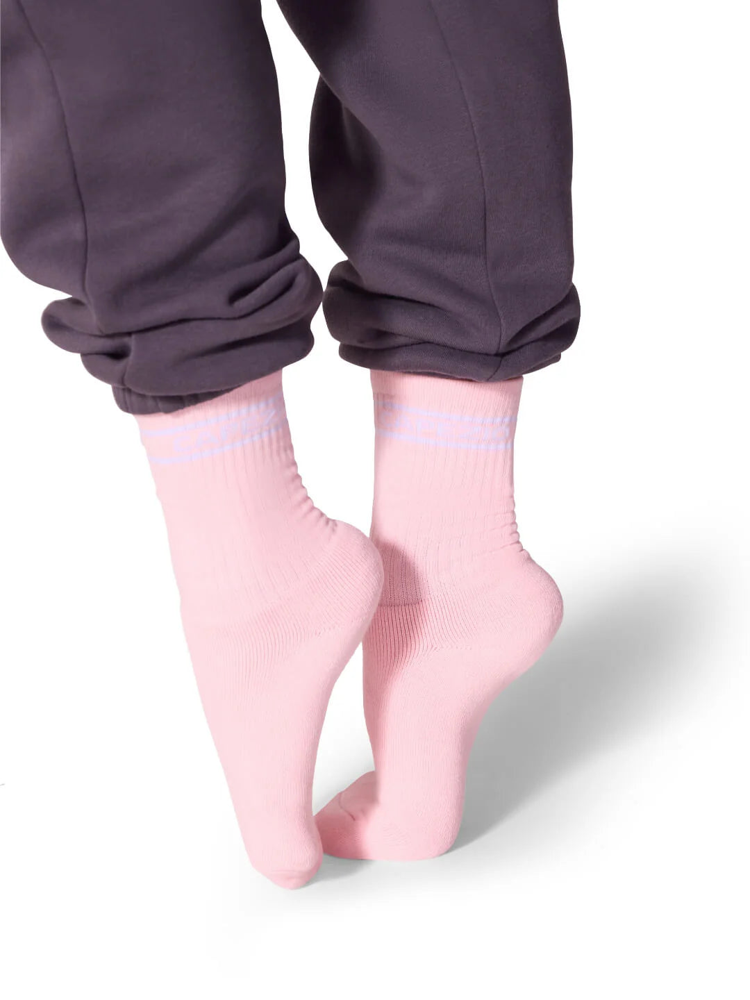 Step into classic comfort in the Unisex Varsity Crew Sock. These vintage-style crew socks are made of a heavenly cotton/poly/lycra blend and are perfect for lounging or on the go. Featuring a sleek Capezio logo in black that is sure to stand out, and cushioning that will keep your feet energized all day long. Wear them tall or scrunched with your favorite tap shoes or sneakers for the perfect look!
