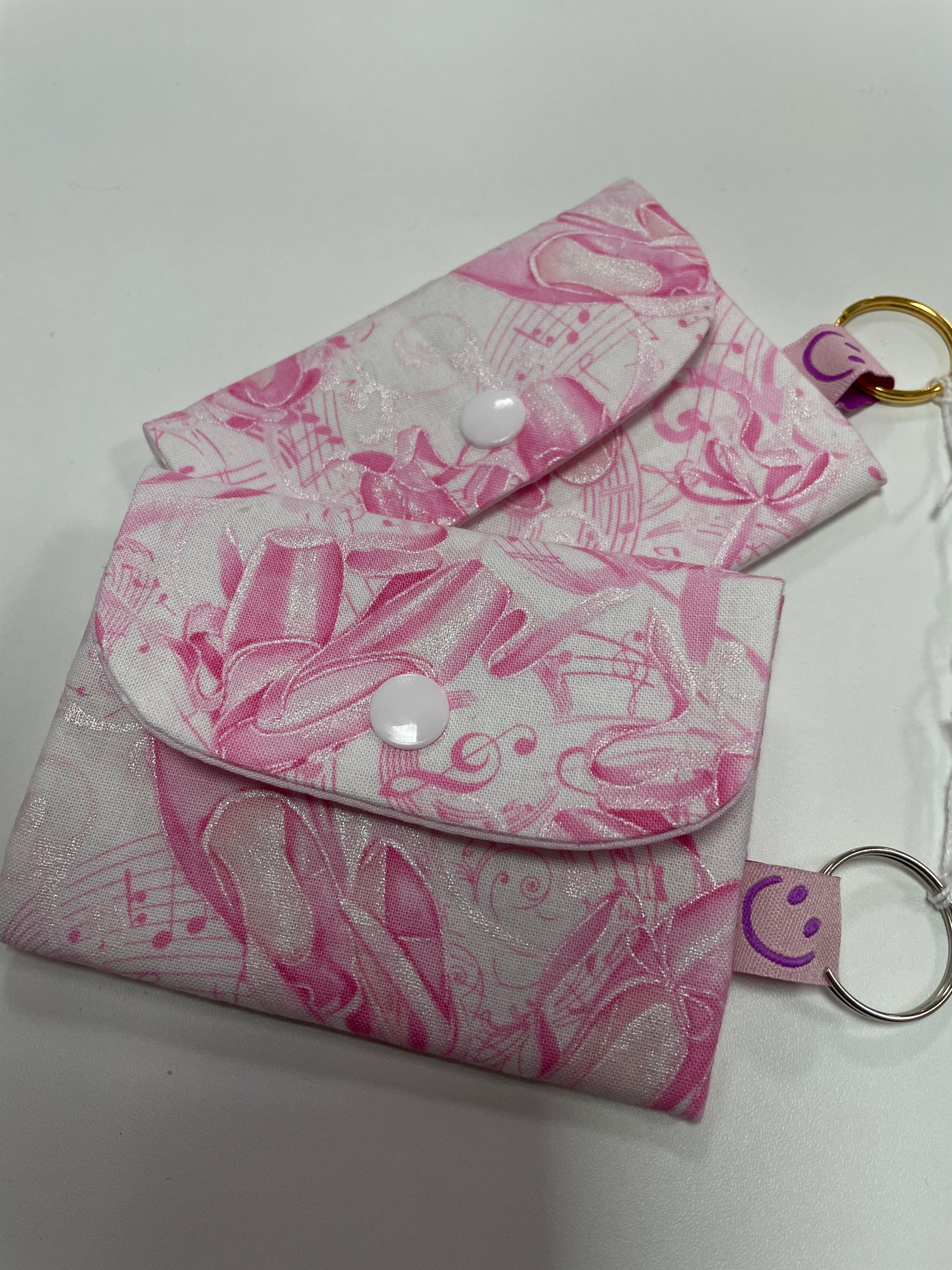 Beautiful handmade purse with dance designs. Made from good quality material and pop fastening. Main compartment and an extra card pocket. Keyring loop with a smiley face label for extra cuteness, perfect gift for a dancer 💕